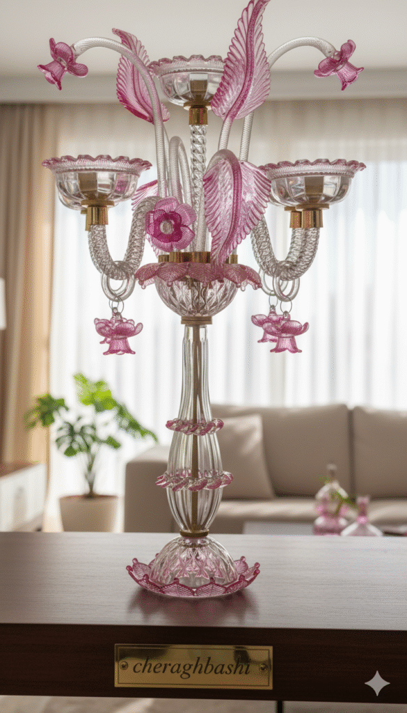 شمعدان مورانو رنگ صورتی