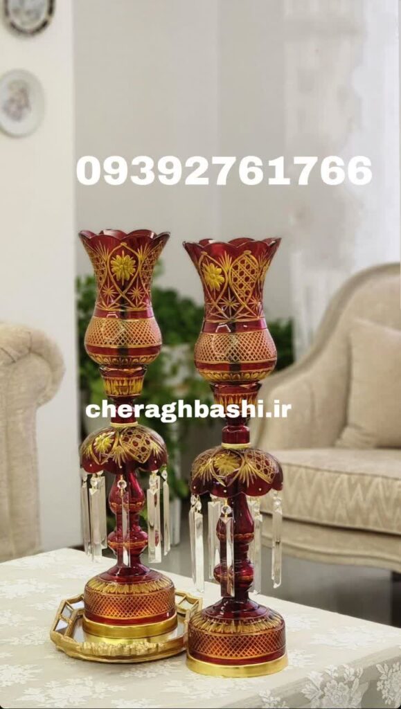 یک جفت چراغ کریمخانی تماما تراش مدل تراش سلطنتی