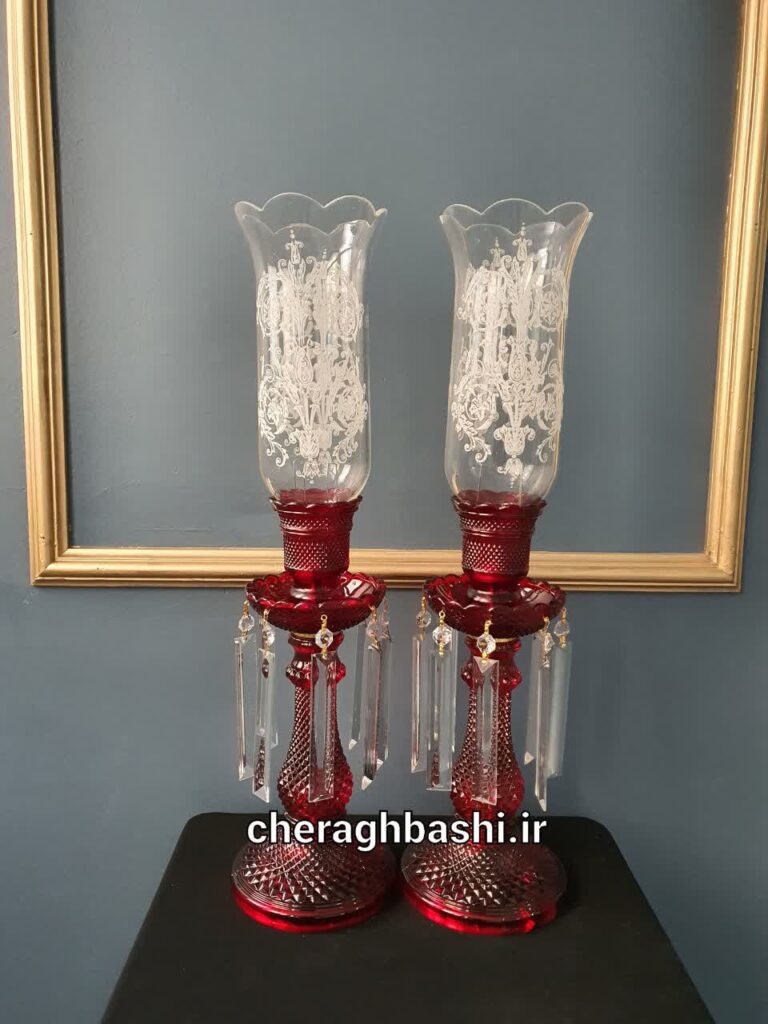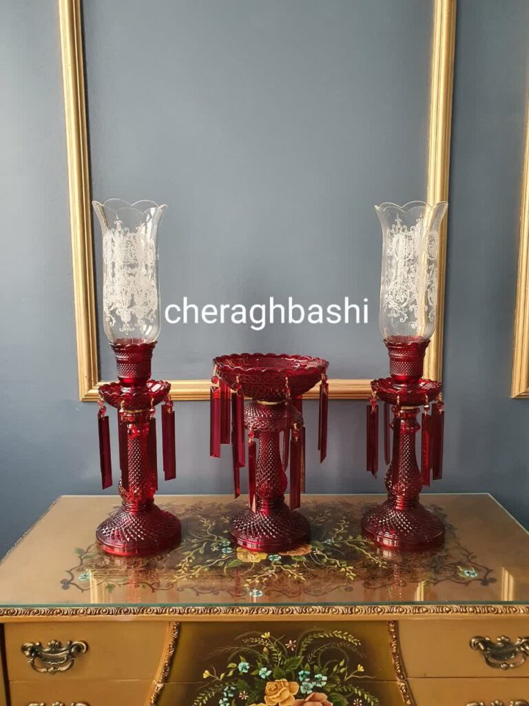ست سه تیکه شمعدان با لاله و لاستر باکارات رنگ قرمز یلدایی