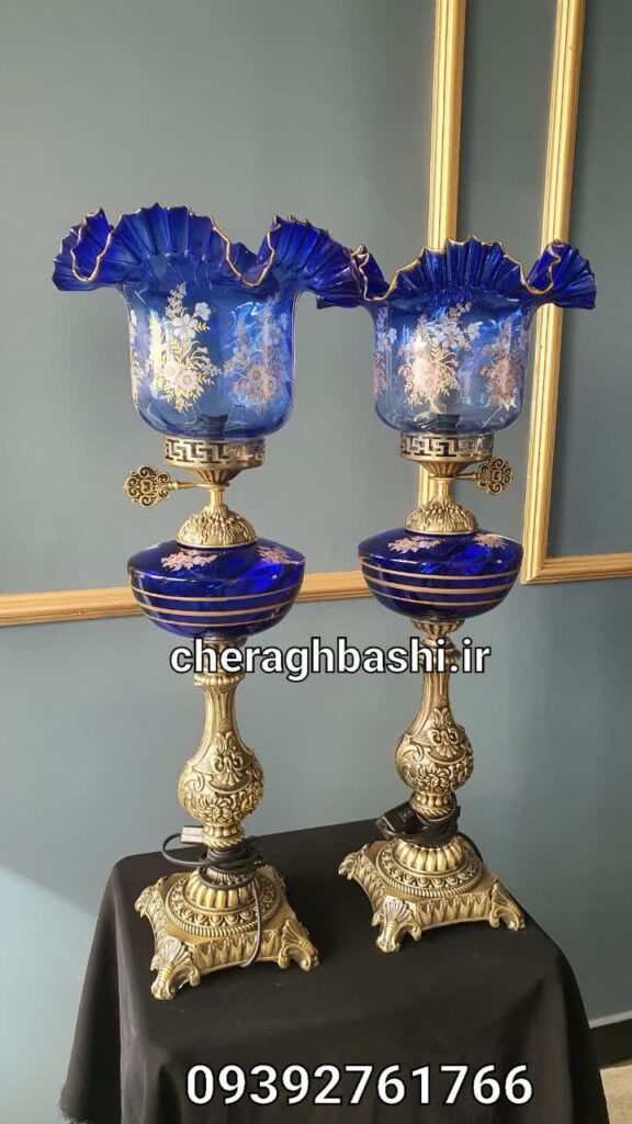 چراغ لب چین خودرنگ رنگ لاجوردی نقاشی سفارشی پایه سنگ مرمر