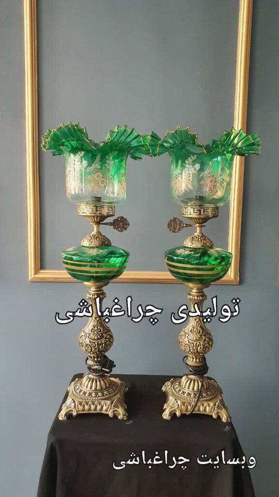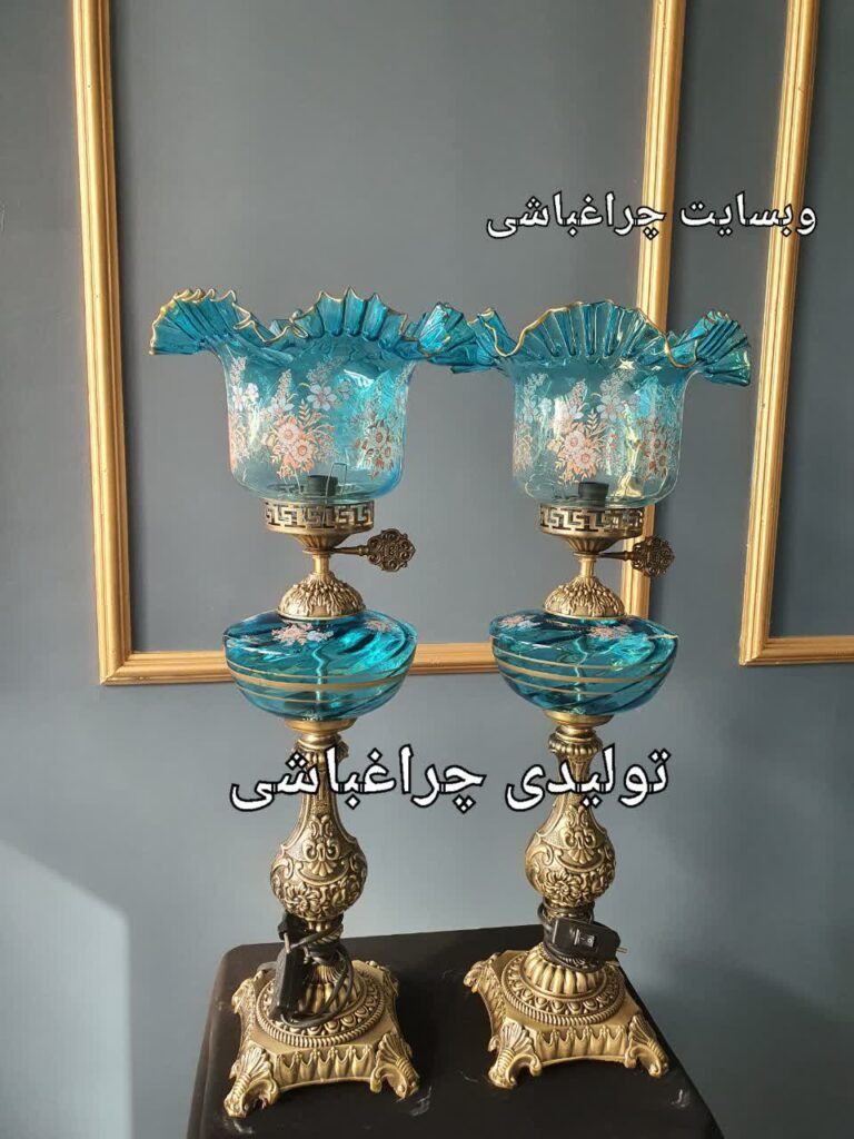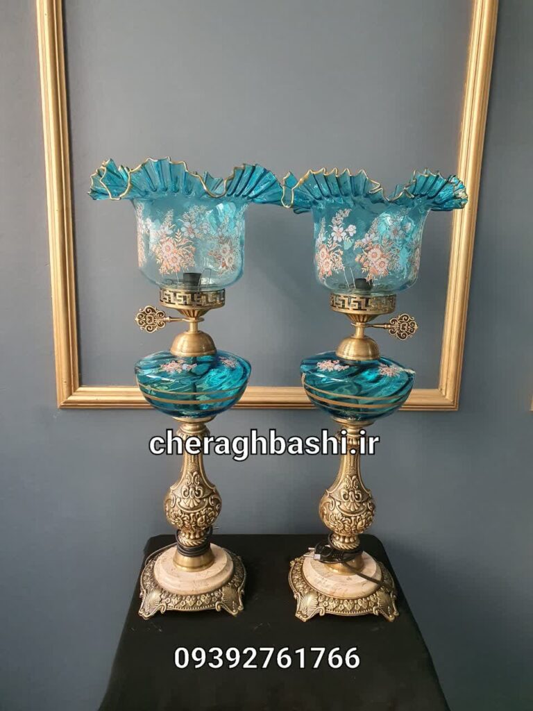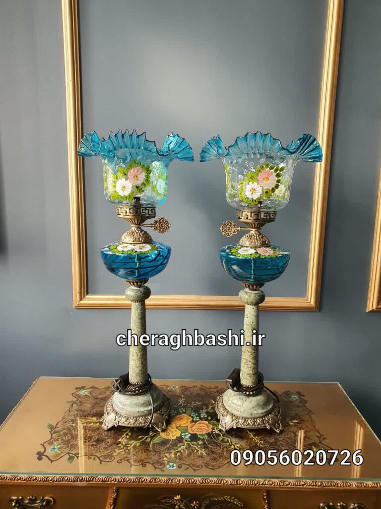 چراغ لب چین خودرنگ رنگ فیروزه ای نقاشی سفارشی پایه سنگ مرمر