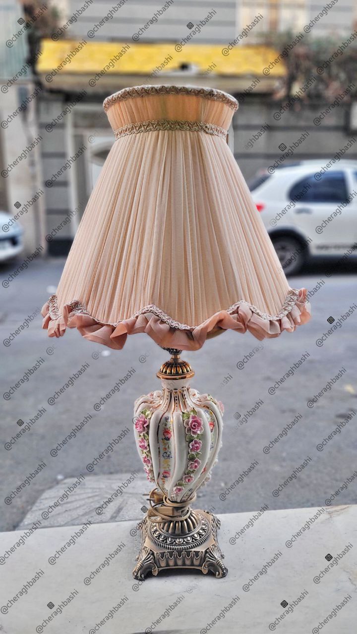 آباژور ستون چینی طلاکوب پایه آنتیک درجه یک شید کرم