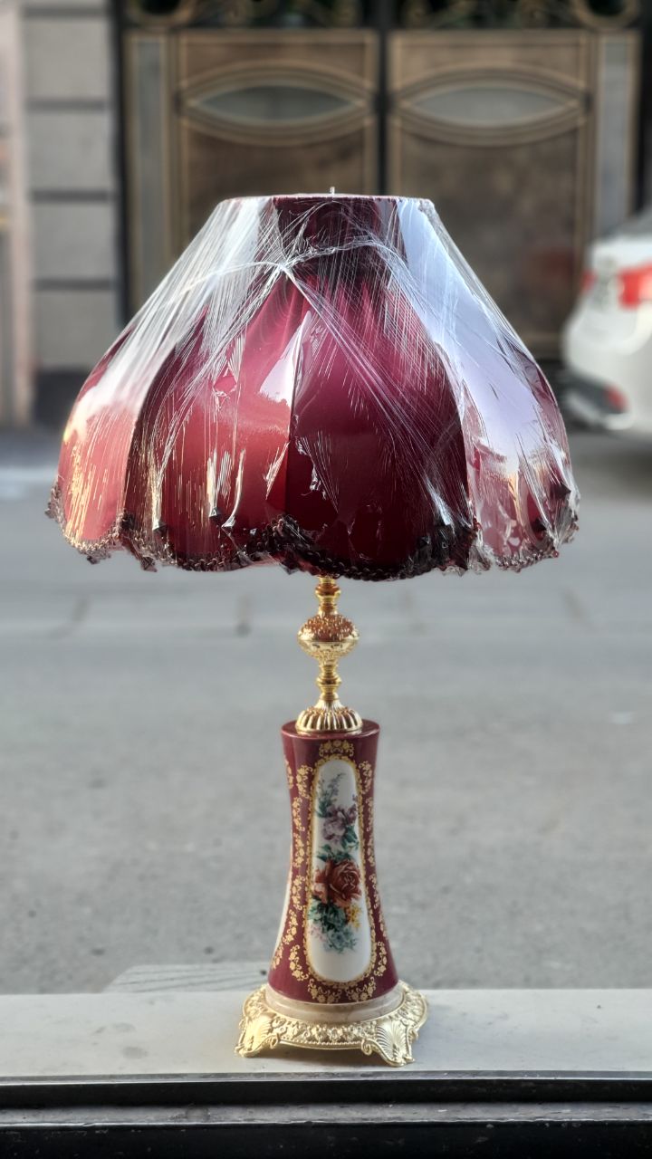 آباژور ستون چینی قطعات طلایی رنگ زرشکی