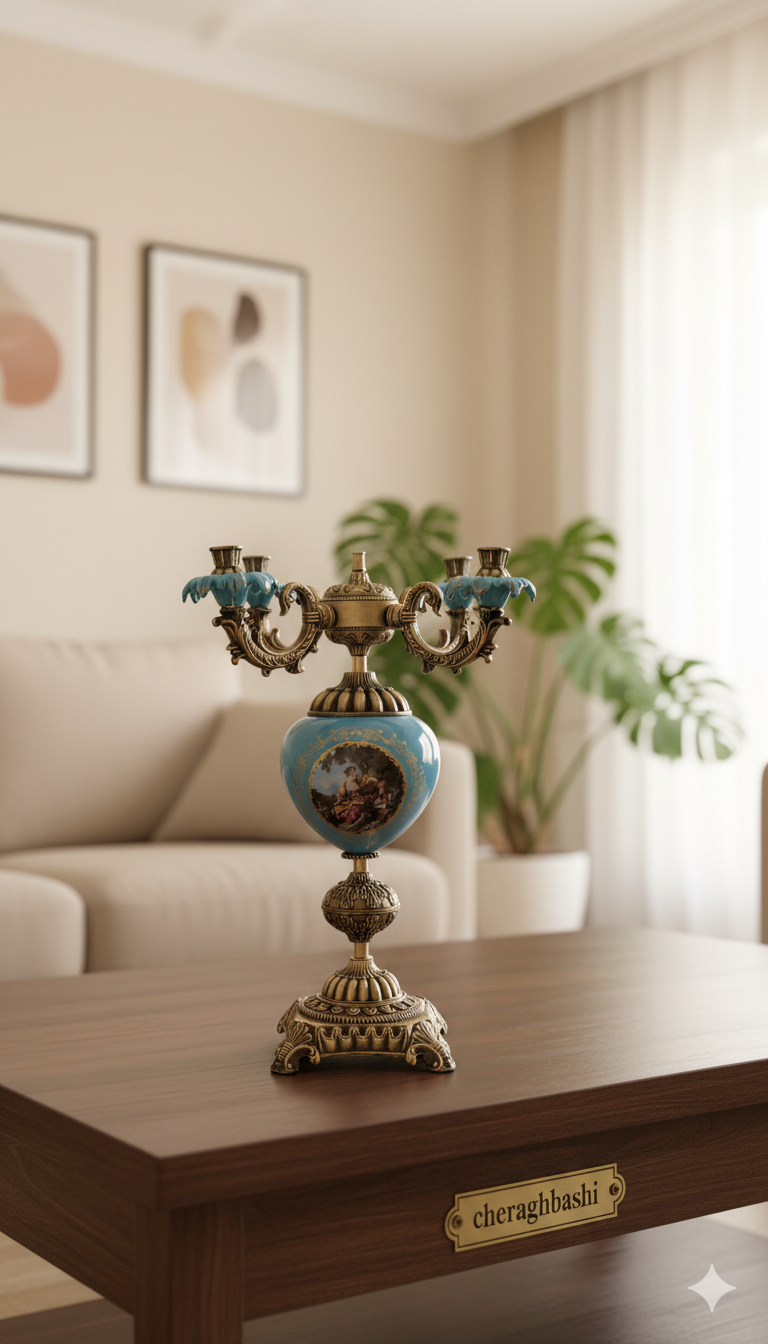 شمعدان چهار شاخه ستون چینی طلاکوب